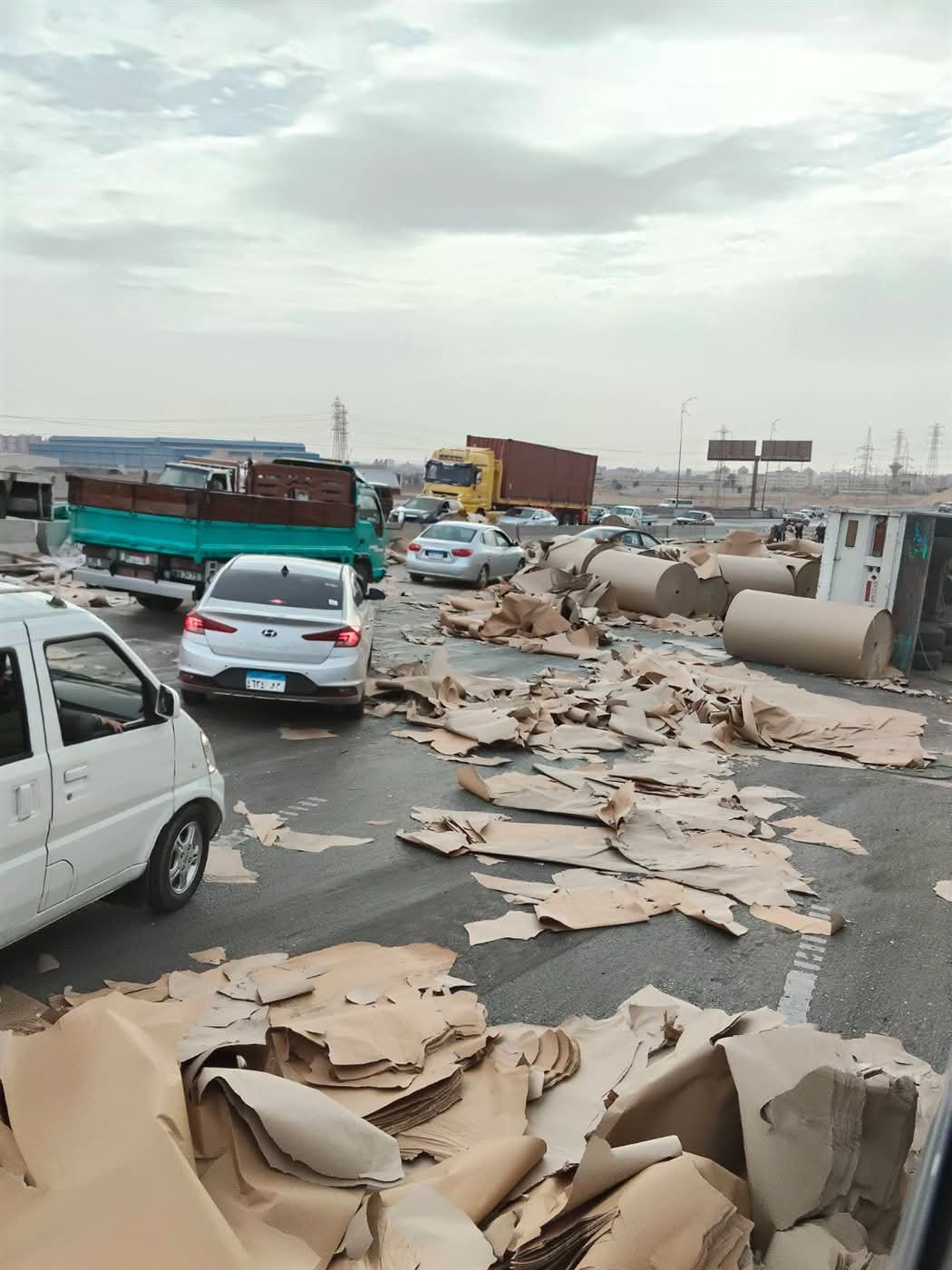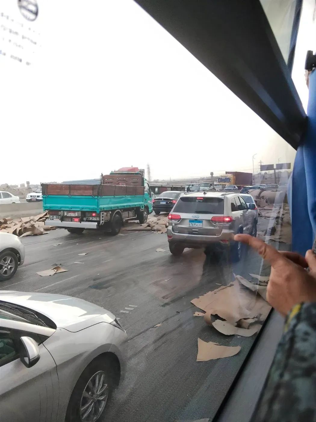 تصادم سيارة نقل وعدد من السيارات على الطريق الأوسطي اتجاه أكتوبر