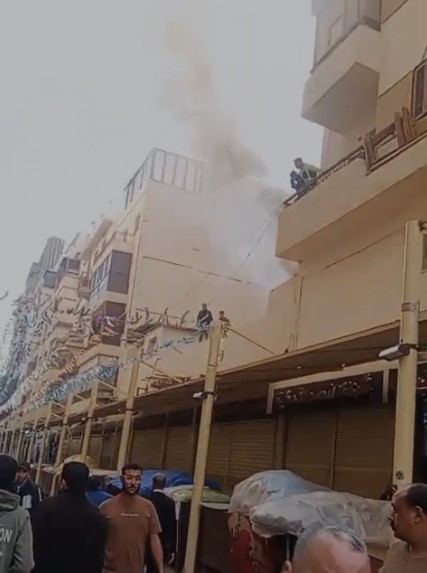 اندلع من قليل حريق أعلى سطح عقار في سوق العتبة الجديدة بوسط القاهرة