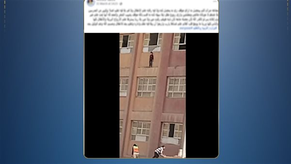 شهدت إحدى المدارس بمحافظة القليوبية تداول مقطع فيديو يظهر فيه أحد الطلاب واقفًا خارج شرفة الطابق الثالث، معرضًا حياته للخطر.