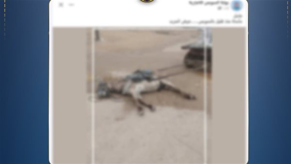 كشفت وزارة الداخلية ملابسات منشور تم تداوله بمواقع التواصل الإجتماعى تضمن نفوق دابة تجر عربة "كارو" إثر تعرضها لصعق كهربائى من كابل كهرباء بأحد أعمدة الإنارة بأحد الشوارع بالسويس والزعم بكون الكهرباء مسروقة منه.