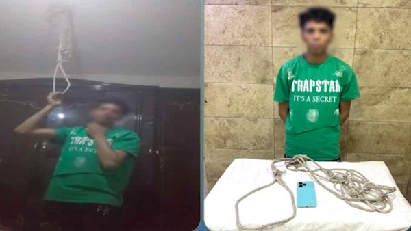 فى إطار كشف ملابسات مقطع فيديو تم تداوله بأحد الحسابات بمواقع التواصل الإجتماعى يظهر خلاله صاحب الحساب حال قيامه بربط حبل بسقف الغرفة وإعداده "على هيئة حبل مشنقة" وشرح كيفية التعلق به للإنتحار.