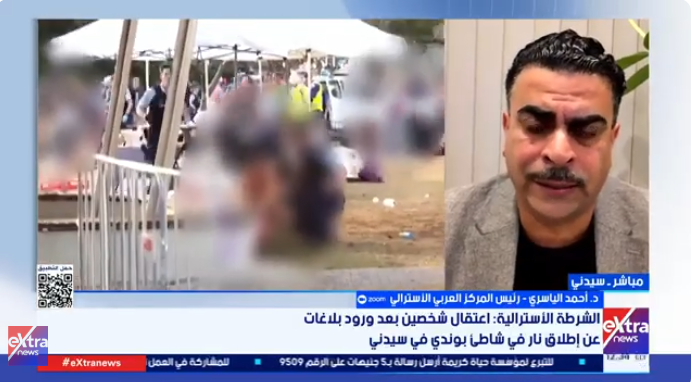 وأشار أحمد الياسري، خلال مداخلة عبر تطبيق “زووم” مع الإعلامية نسرين فؤاد على قناة “إكسترا نيوز”، إلى أن الحكومة الأسترالية الفيدرالية تعاملت مع الحادث بجدية بالغة، حيث صدر بيان رسمي عن رئيس الوزراء أكد فيه أن الهجوم يبدو منظمًا، ما يفتح الباب أمام احتمالات تتعلق بالإرهاب أو الجرائم القائمة على الكراهية، لافتًا إلى أن السلطات المختصة لا تزال تواصل التحقيقات، رغم انتهاء العملية ميدانيًا وتأمين المنطقة بالكامل.