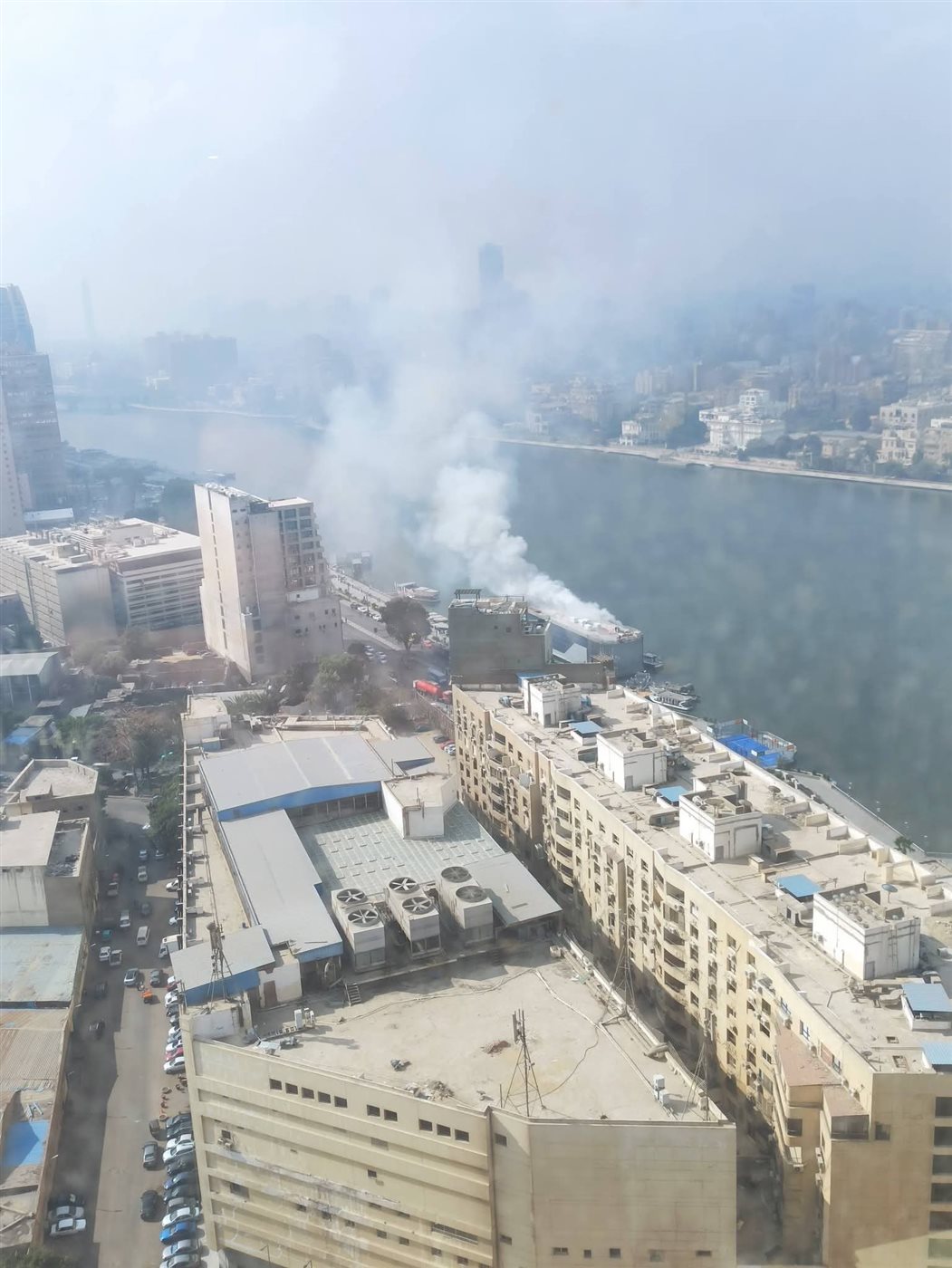 نشب حريق منذ قليل في أحد المراكب السياحية النيلية أمام اركاديا كورنيش النيل وسط البلد